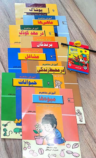 (آموزش قبل از مدرسه،زبان آموزی و نقاشی،کمترین نوبت چاپ:5،بیشترین نوبت چاپ:7،به همراه:مدادرنگی 12رنگ،مداد طراحی و تراش،تصویرگر:امیر خالقی،8جلدی)